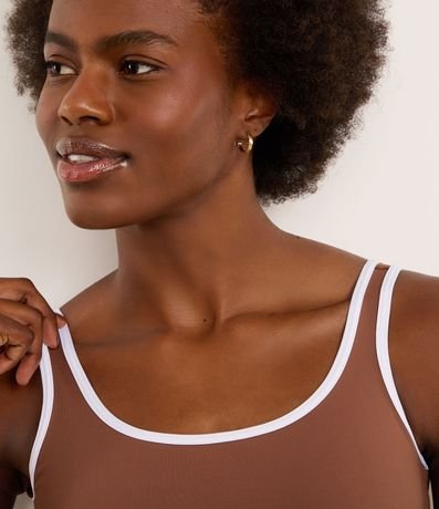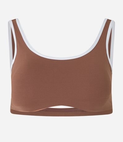Ref: Top esportivo confeccionado em microfibra, com alças largas, bojo removível, detalhes contrastantes, decote V nas costas e decote U frontal.