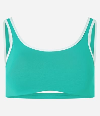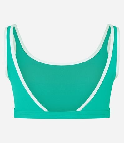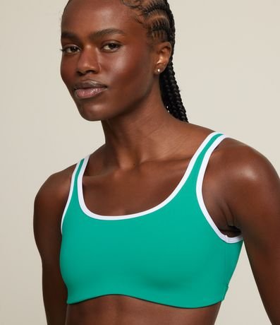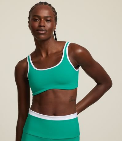 Ref: Top esportivo confeccionado em microfibra, com alças largas, bojo removível, detalhes contrastantes, decote V nas costas e decote U frontal.