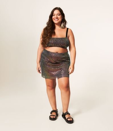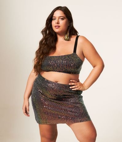 Ref: Top de paetês com alça fina lisa.