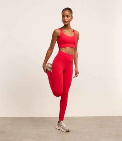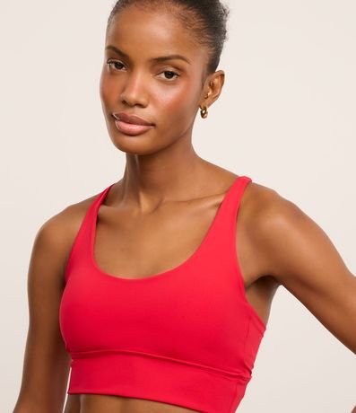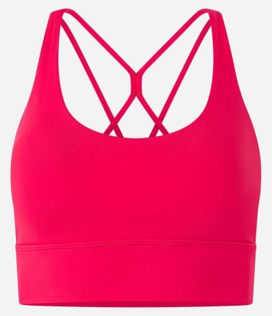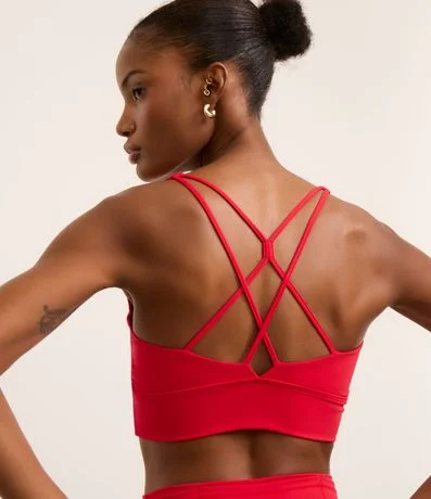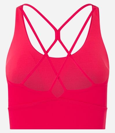 Ref: Top esportivo confeccionado em microfibra confeccionado seguindo boas práticas ambientais. A peça alongada tem cós largo, bojos removíveis, decote U e tiras finas cruzadas nas costas.