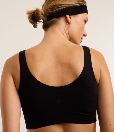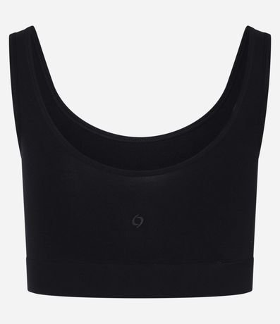 Ref: Top esportivo com bojos, confeccionado em poliamida seamless, com decote U e alças médias.