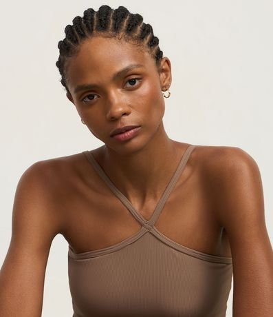 Top Esportivo Com Bojo Textura Canelada E Decote Halter