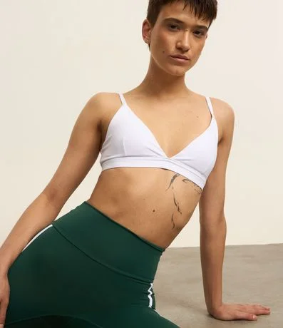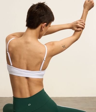 Ref: Top esportivo confeccionado em microfibra sem estampa. A peça tem alças finas reguláveis, bojo e decote V.