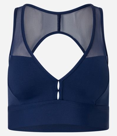 Top Esportivo em Microfibra com Recortes em Tule e Abertura nas Costas