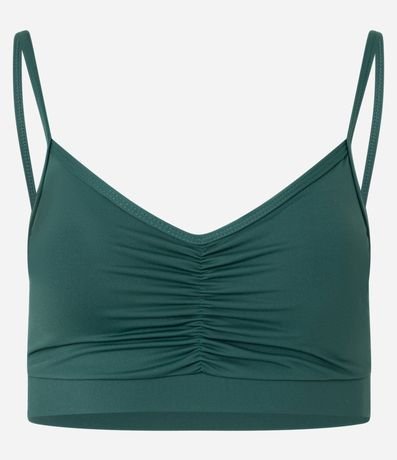 Ref: Top esportivo feminino, confeccionado em microfibra, com alcinha fina e detalhe franzido frontal.