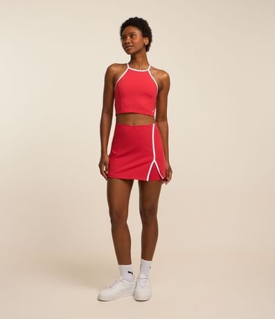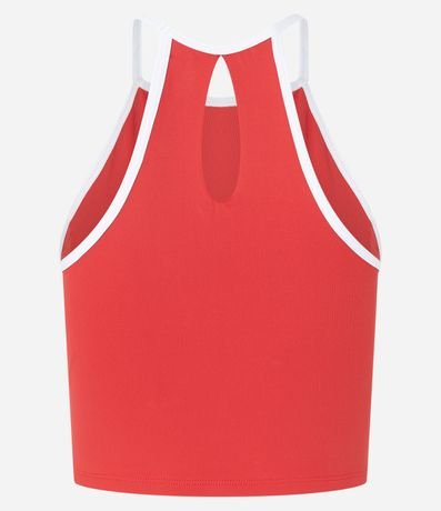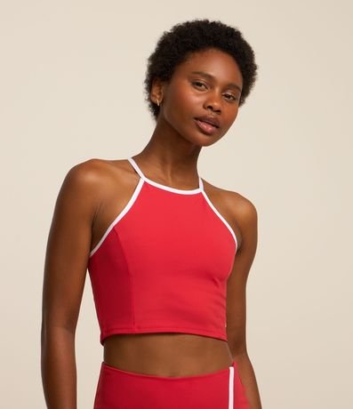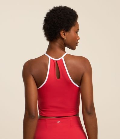 Ref: Top em poliamida sem bojo, nadador, com detalhe nas costas e viés contrastante.