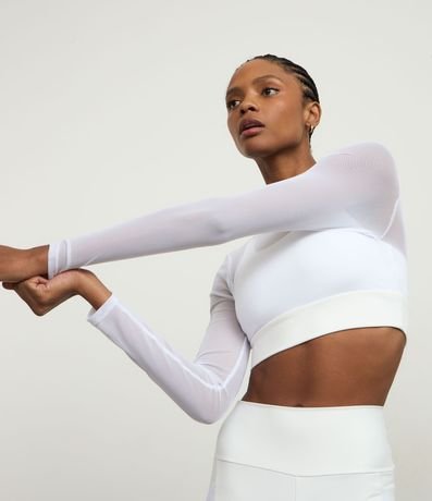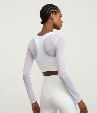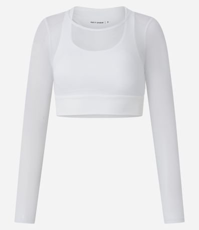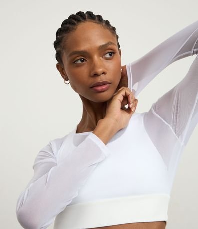 Top Feminino Esportivo com Bojo em Microfibra e Sobreposição em Tule
