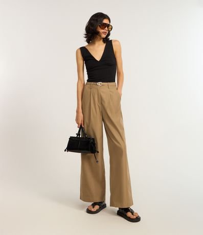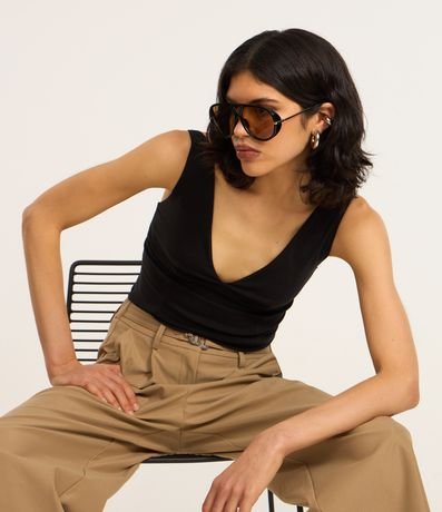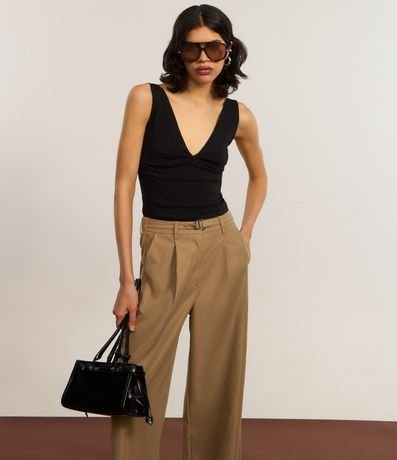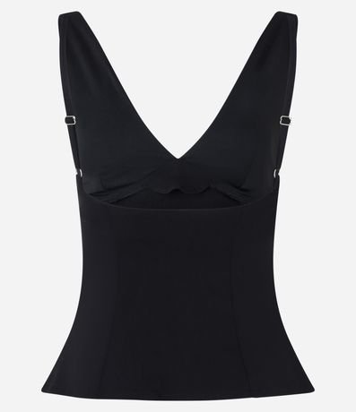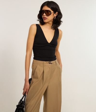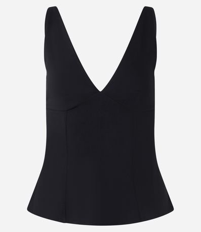 Top frente única confeccionado em bengaline composto por viscose certificada. A peça tem decote V.