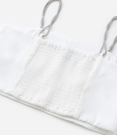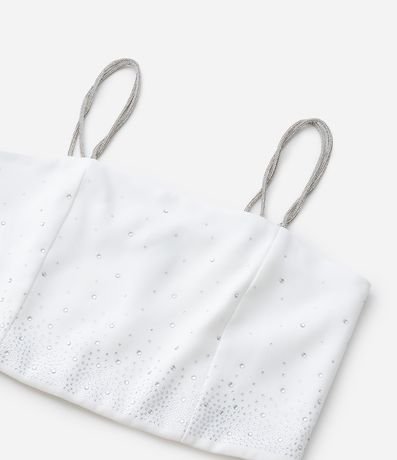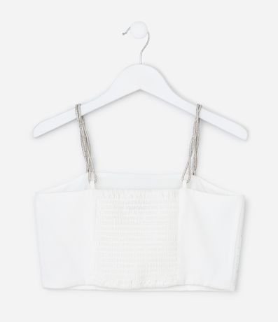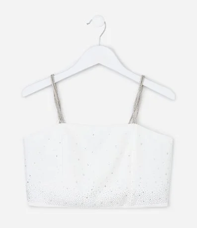 Ref: Top infantil confeccionado em crepe. Possui decote quadrado, alças finas brilhosas, com aplicação de brilhos, recorte e alfaiatado.