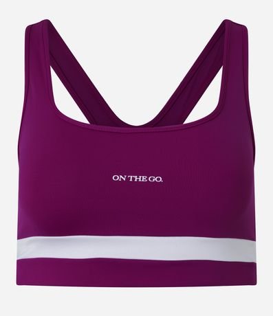 Top esportivo modelo nadador confeccionado em microfibra. A peça tem alças fixas (sem regulagem), detalhe contrastante e estampa lettering "on the go".