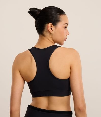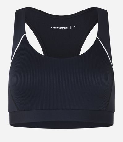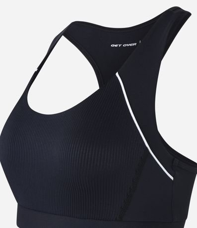Ref: Top esportivo com recorte nadador nas costas. A peça é confeccionada em microfibra e tem detalhe de friso contrastante.