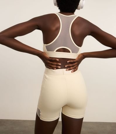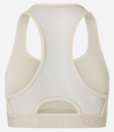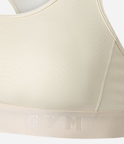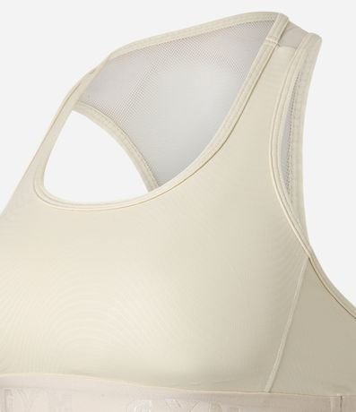 Top esportivo confeccionado em microfibra pesada e texturizada. A peça tem alças largas, decote U frontal, decote nadador nas costas, bojos removíveis e cós elástico.