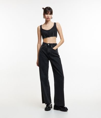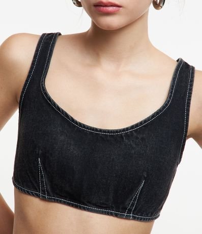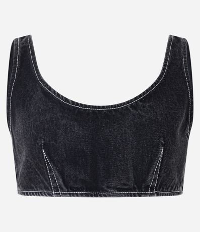 Top Sem Mangas em Jeans com Decote U e Costura Aparente