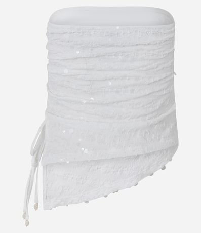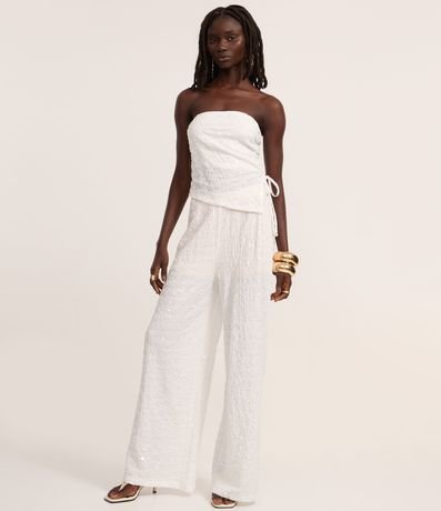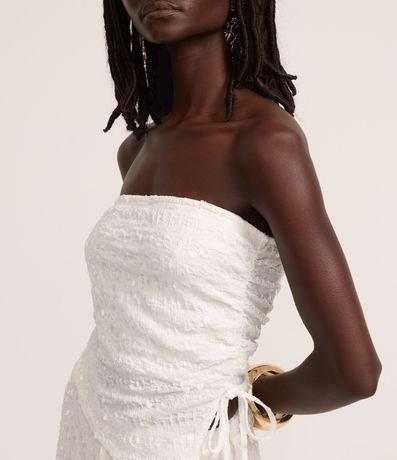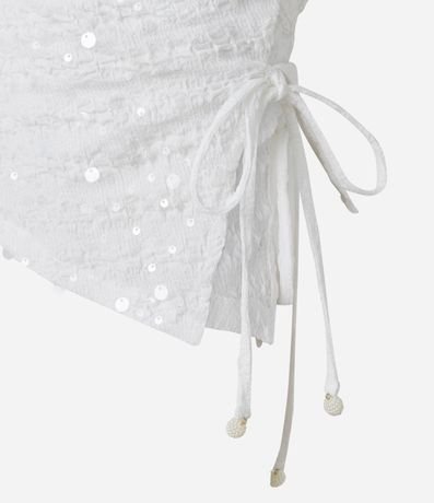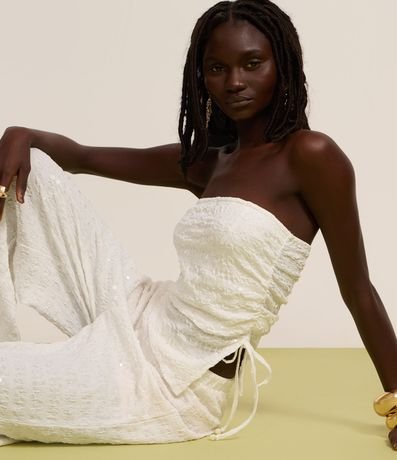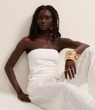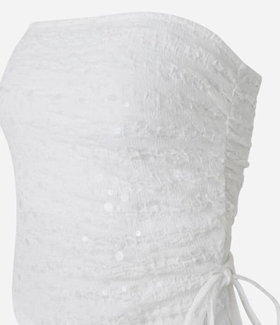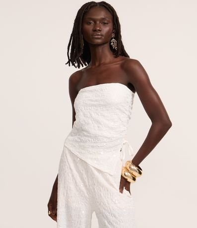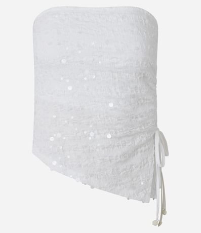 Ref: Blusa de paetê sem alças, com decote reto e amarração franzida na lateral.