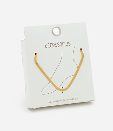 Ref: Tornozeleira feminina confeccionada em metal reciclado. Possui modelo fita italiana, com estrutura em aço inoxidável resistente à água. Conta com fechamento ajustável, ideal para uso diário e contato ocasional com água.