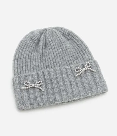 Ref: Touca feminina confeccionada em tricô com barra dobrada e lacinhos aplicados em pérola.