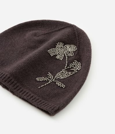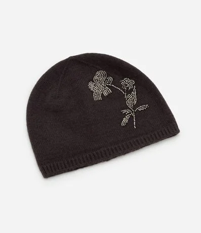 Touca feminina confeccionada em tricô. Possui barra canelada e destaque para o bordado de flor delicado na parte frontal da peça. Ideal para compor looks estilosos no frio.