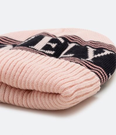 Ref: Touca infantil, de lã com bordado em lettering Lovelly e listras finas.
