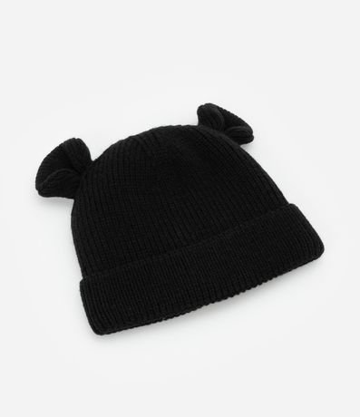 Ref: Touquinha infantil em tricô, com orelhinhas e barra dobrada.