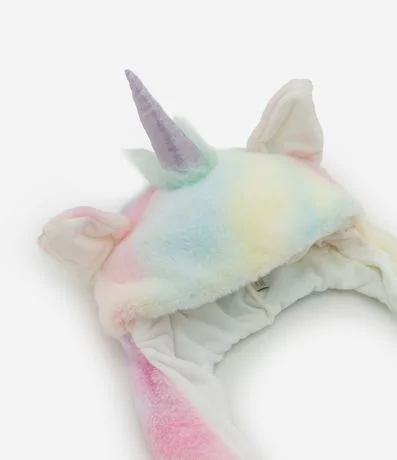 Touca infantil confeccionado em fleece leve com acabamento peluciado e estrutura fechada. Possui orelhas aplicadas, chifre de unicórnio em destaque e sistema interativo nas extremidades, acionado por pressão. Conta com forro interno macio que aumenta o conforto durante o uso.
