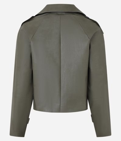 Trench coat em pu com abertura dupla e fechamento em botões.