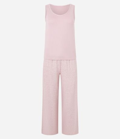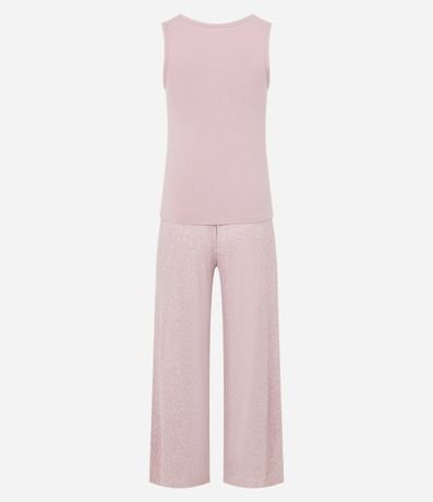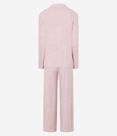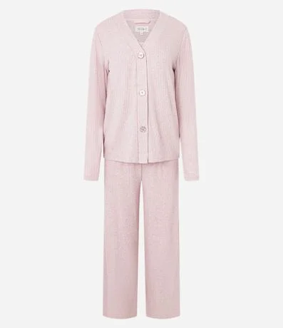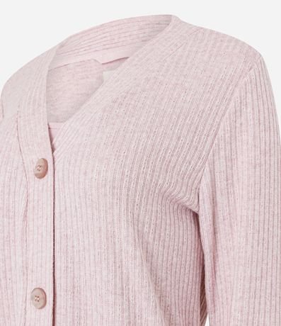 Ref: Trio de pijama feminino longo, confeccionado em malha de efeito tricô e composto por 03 peças: cardigan, regata e calça. Possui padronagem mescla e abotoamento frontal.