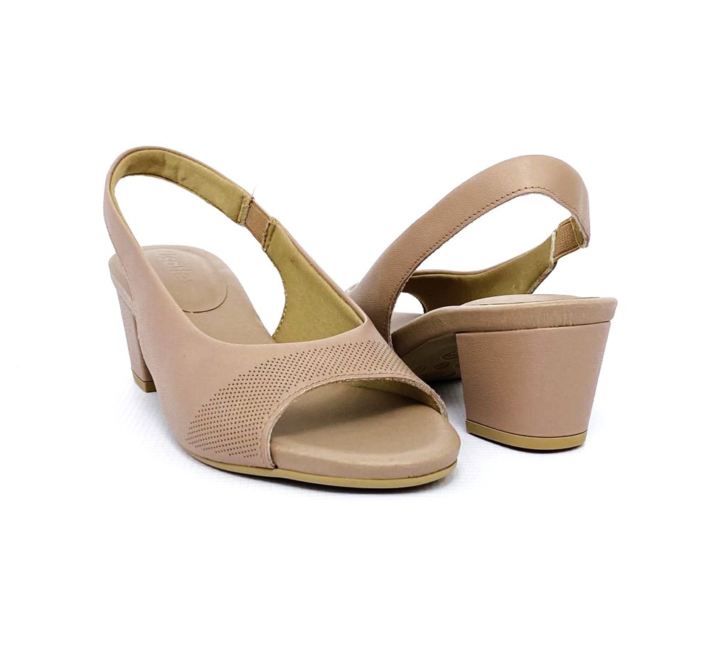 Slingback em cabedal napa valise, detalhe laser. O modelo possui tecnologia calce fácil, com modelagem inteligente em adaptar o calçado a ergonomia dos pés.