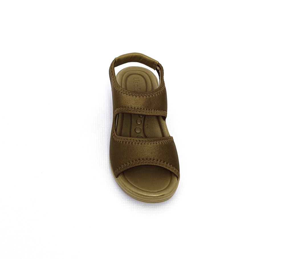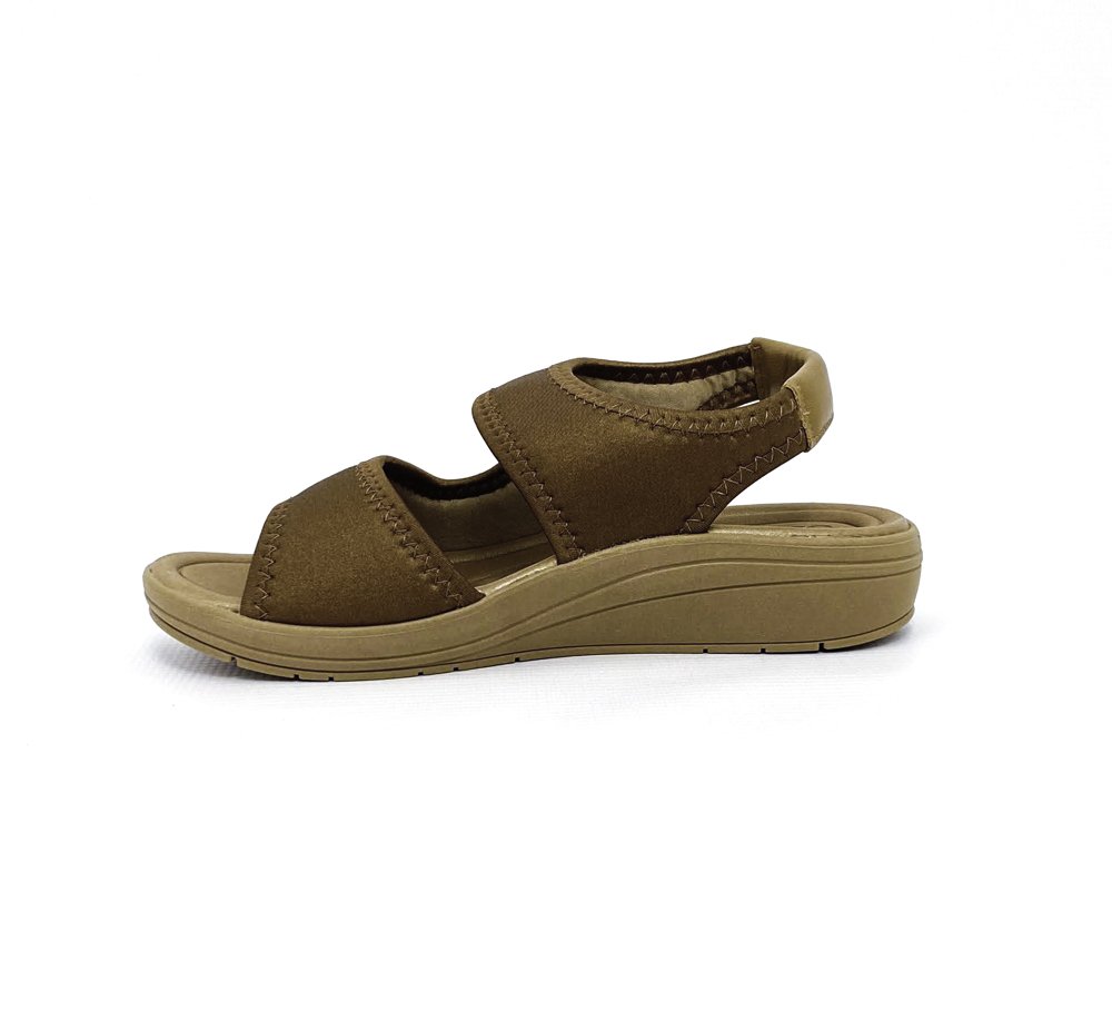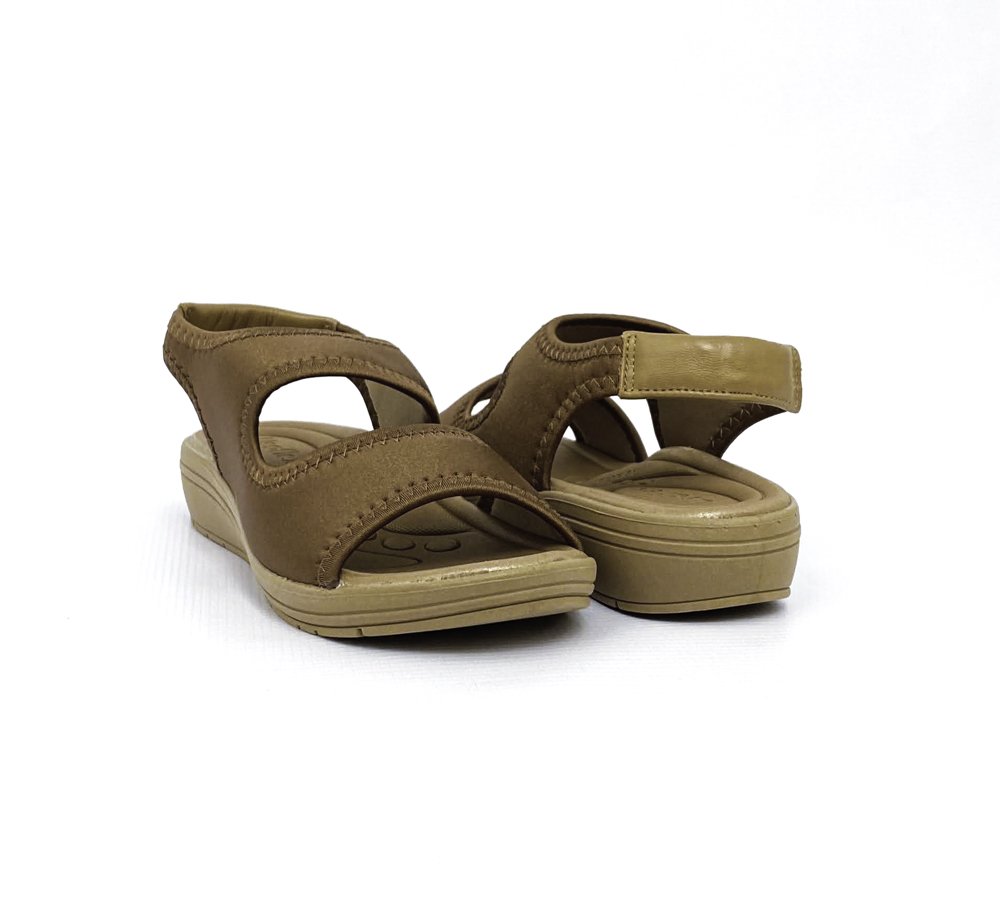 Ref: Sandália salto anabela com cabedal em elastano canela e napa comfy. A Tecnologia Arcoflex oferece estrutura que preenche a região do arco plantar, auxiliando no alívio de possíveis dores nas regiões dos pés, tornozelos e pernas.
