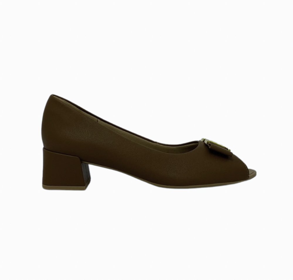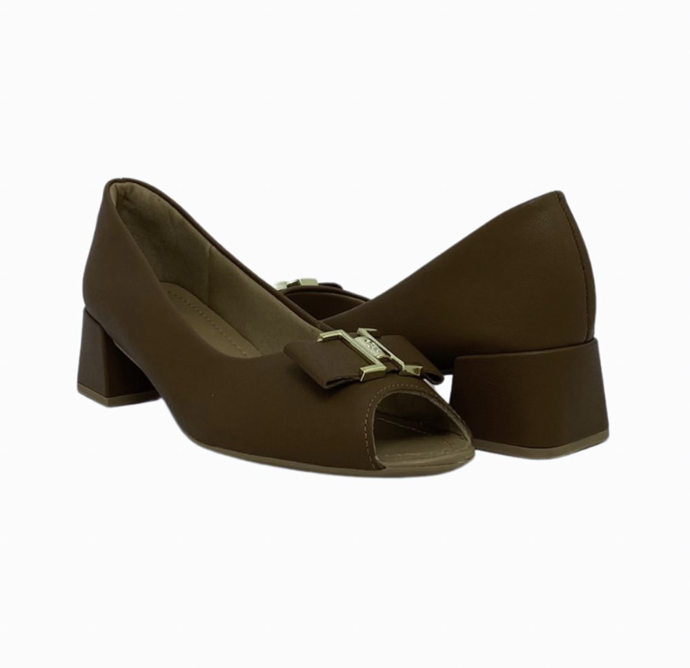 Ref: Scarpin salto bloco, cabedal aberto para ventilação e evitar odores, confeccionado em couro napa valise. O modelo possui tecnologia Bem-Estar, com espumas posicionadas em pontos estratégicos na palmilha garantindo conforto.