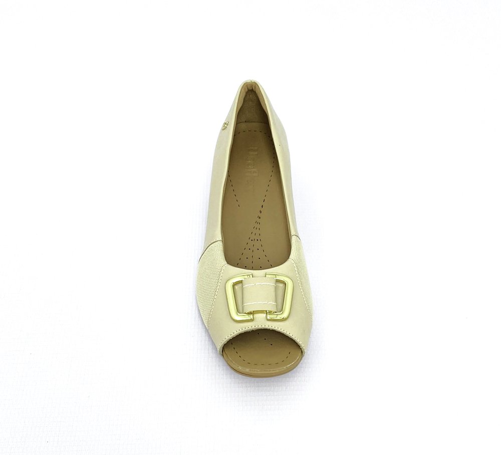 Cabedal em couro napa valise e tecido para joanetes. O modelo possui tecnologia menor impacto, proporcionando amortecimento no calcanhar e na planta do pé, oferecendo conforto principalmente para pessoas com esporão de calcâneo e metatarsalgia.