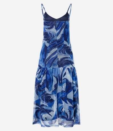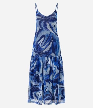 Vesstido Godê Midi em Tule com Estampa Abstrata