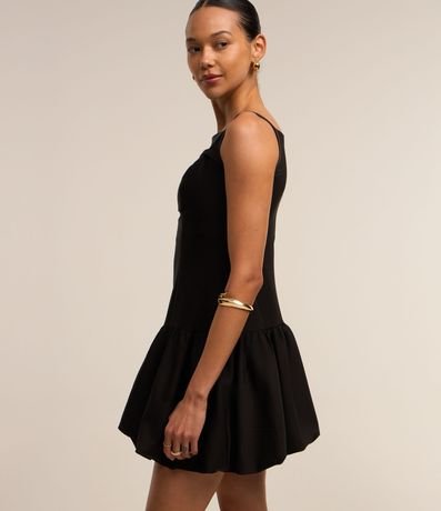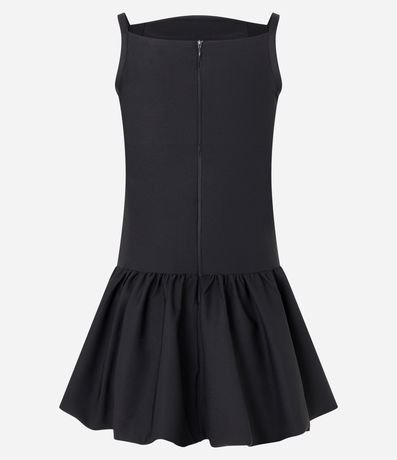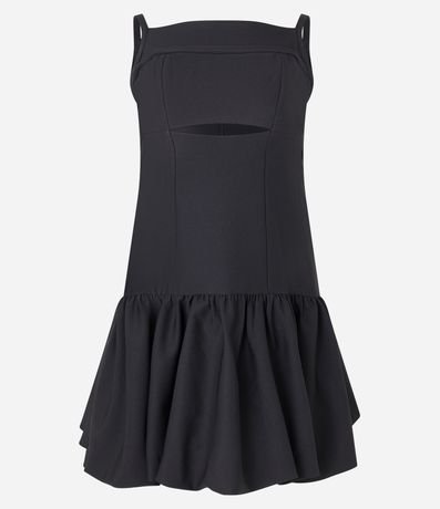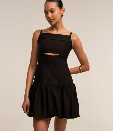 Ref: Vestido curto balonê feminino, com decote quadrado, alcinha fina, fechamento em zíper nas costas e saia volumosa.
