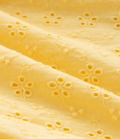 Ref: Vestidinho infantil confeccionado em laise, de material mais sustentável e com textura de florzinhas. Peça de modelo balonê, com gola redonda e sem mangas.