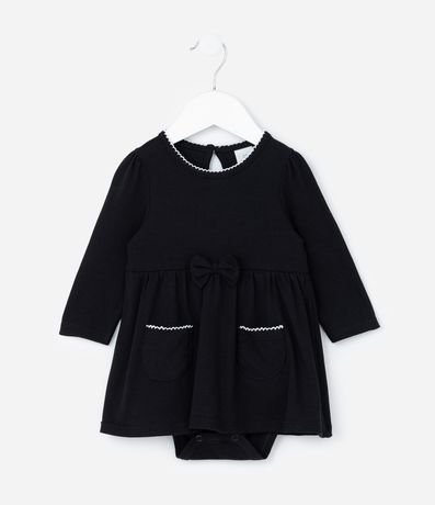 Vestido Body Infantil com Bolsos e Detalhes Contrastantes - Tam a 18 meses