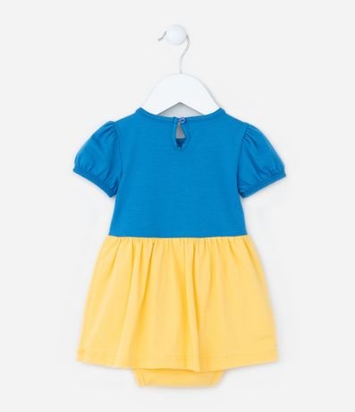 Ref: Vestido body infantil, com estampa fofa da Branca de Neve! Possui gola redonda, mangas curtas bufantes e aplicação de lacinho na cintura e fechamento no entrepernas.