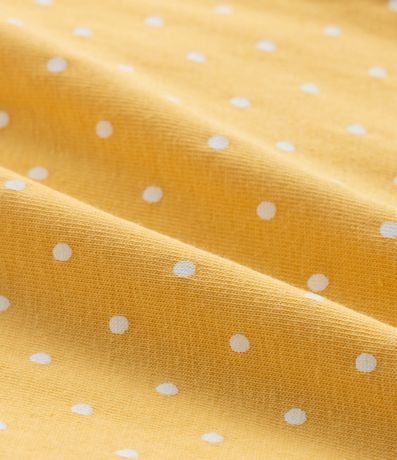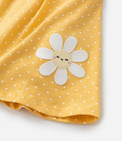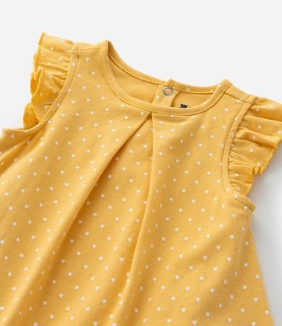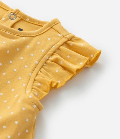 Ref: A praticidade do body com o charminho do vestido! Peça confeccionada em algodão mais sustentável e estampada de bolinhas. O vestidinho tem gola redonda, babados nos ombros, prega frontal, bordado de margaridas sorridentes e fechamento por botões por pressão nas costas e entre as perninhas.