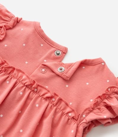 Ref: Vestido body infantil confeccionado em algodão mais sustentável através de boas práticas ambientais. Possui gola redonda, cavas com frufrus, fechamento no entrepernas, abotoamento traseiro, estampa poá e bordado de unicórnio.