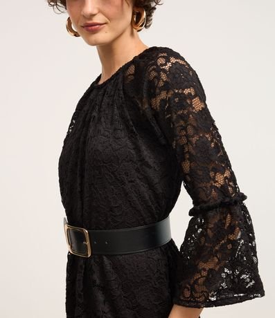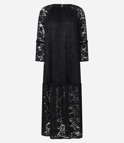 Vestido Boho Reto em Renda com Detalhes Transparentes