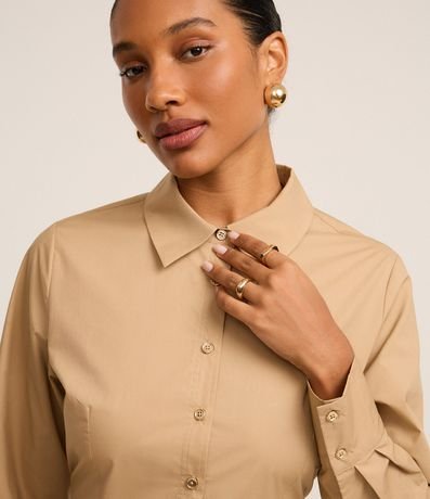 Ref: Vestido curto feminino confeccionado em tricoline, com mangas longas e cintura ajustada. De modelo chemise, possui abotoamento frontal, gola colarinho e pregas frontais na saia.