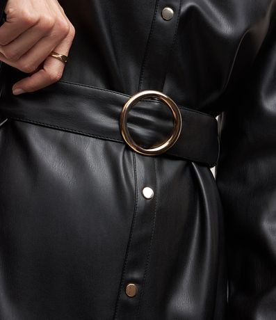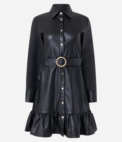 Vestido Chemise em PU com Cinto Fivela
