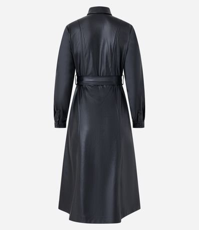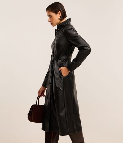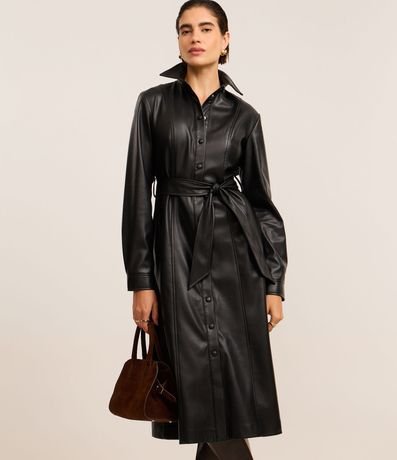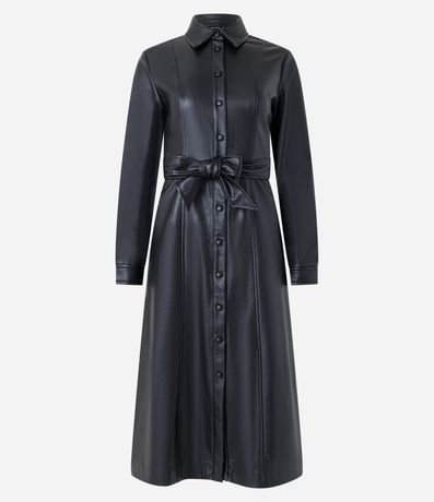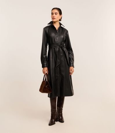 Vestido Chemise em PU com Faixa para Amarração