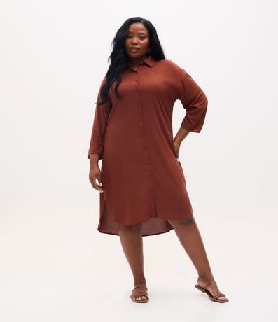 Ref: Vestido plus size de modelo chemise, confeccionado em viscose certificada, com comprimento curto e mangas curtas. Sem estampa, possui abotoamento frontal total, gola camisa e barras arredondadas.