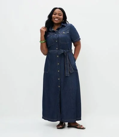 Ref: Vestido confeccionado em denim de algodão mais sustentável, com acabamento liso e estrutura encorpada que garante caimento alinhado. O modelo apresenta design chemise, com manga curta, gola com colarinho, fechamento frontal por botões com acabamento tartaruga e comprimento midi, trazendo visual clássico e funcional. Possui cinto no mesmo tecido para ajuste na cintura, valorizando a silhueta com conforto. Desenvolvido para a linha Curve & Plus Size, é uma peça versátil para composições casuais e uso no dia a dia.