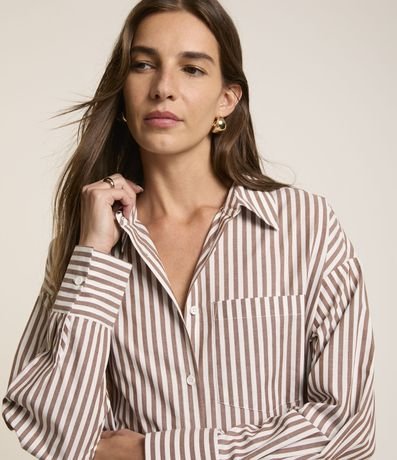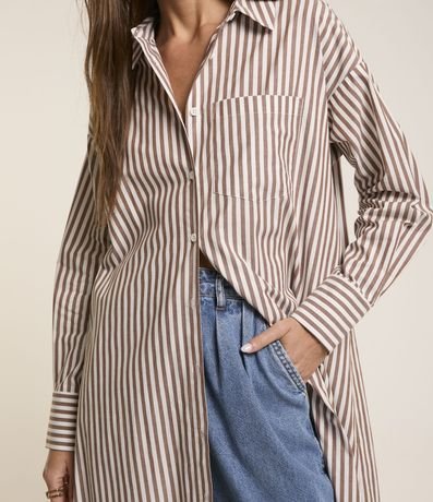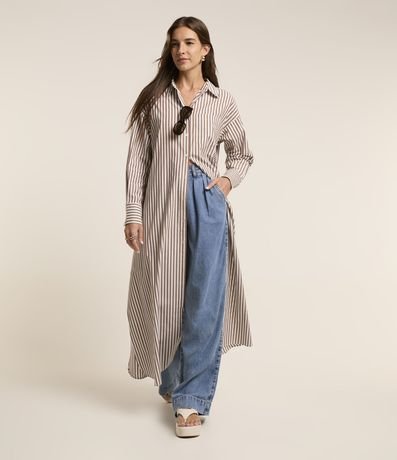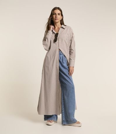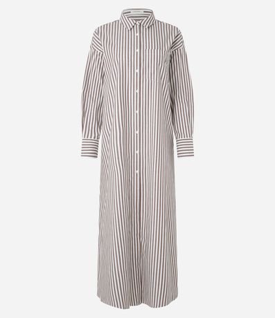 Vestido Chemise Longo em Tricoline com Listras