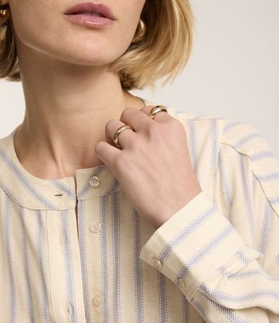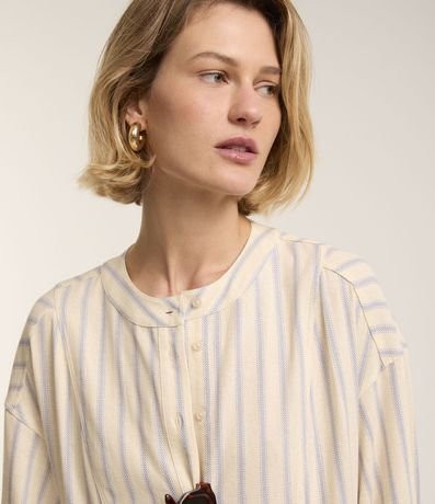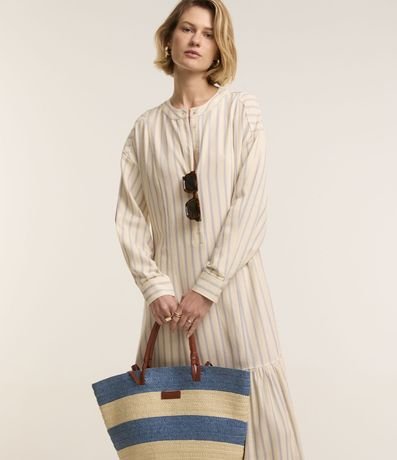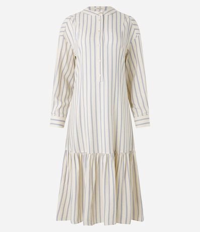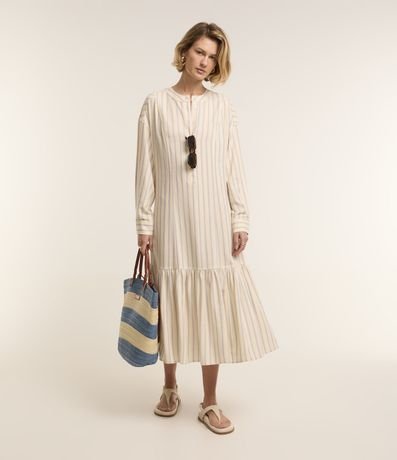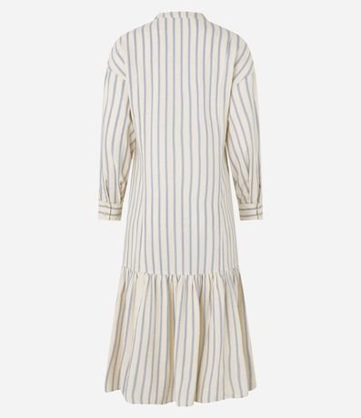Ref: Vestido chemise midi manga 3/4 em viscolinho listrado com fio tinto e decote v.
