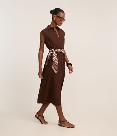 Ref: Vestido chemise feminino confeccionado com viscose mais sustentável e linho.