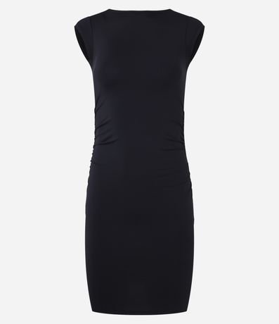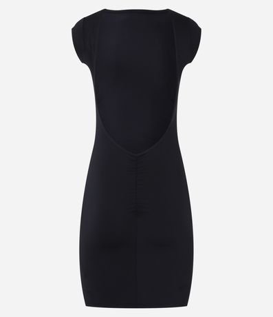 Vestido curto com manga curta, decote nas costas, confeccionado em jersey e com franzidinho na lateral.