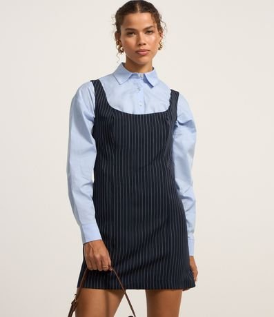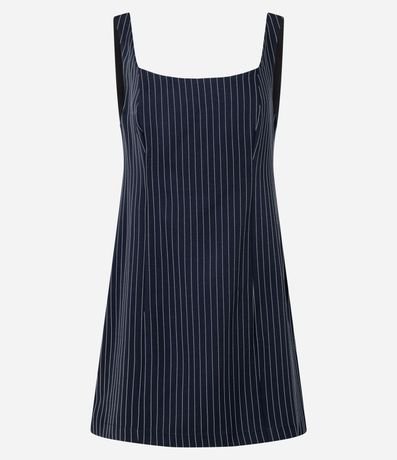 Vestido Curto Alfaiatado com Decote Quadrado e Riscas de Giz