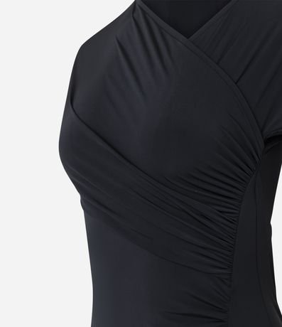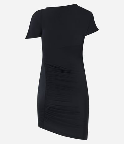 Vestido Curto com Franzido Decote Assimétrico e Barra Transpassada