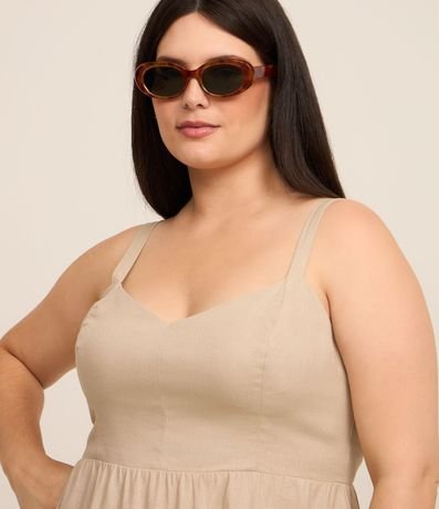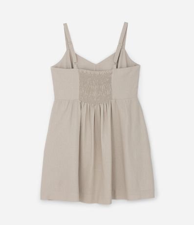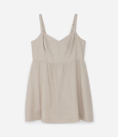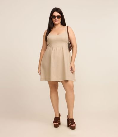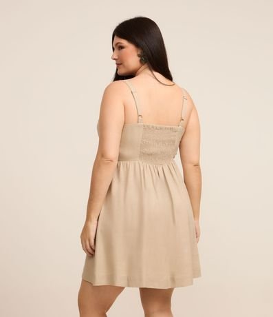 Ref: Vestido feminino curto Curve & Plus Size confeccionado em viscose com linho, decote em v e alças médias ajustáveis.